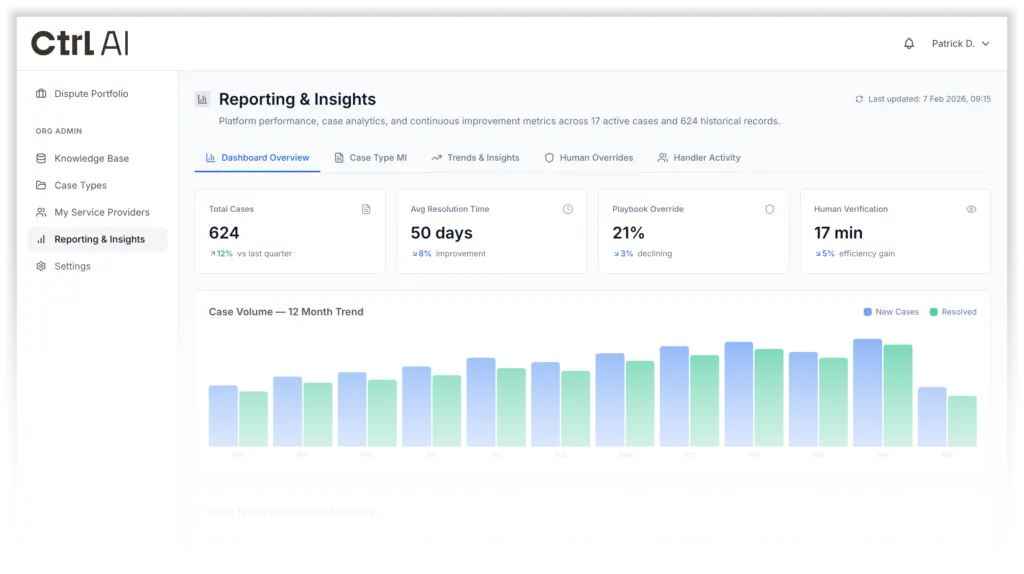 Ctrl AI gives you visibility across your entire dispute portfolio, creating trends, identifying risk and performance becomes measurable.