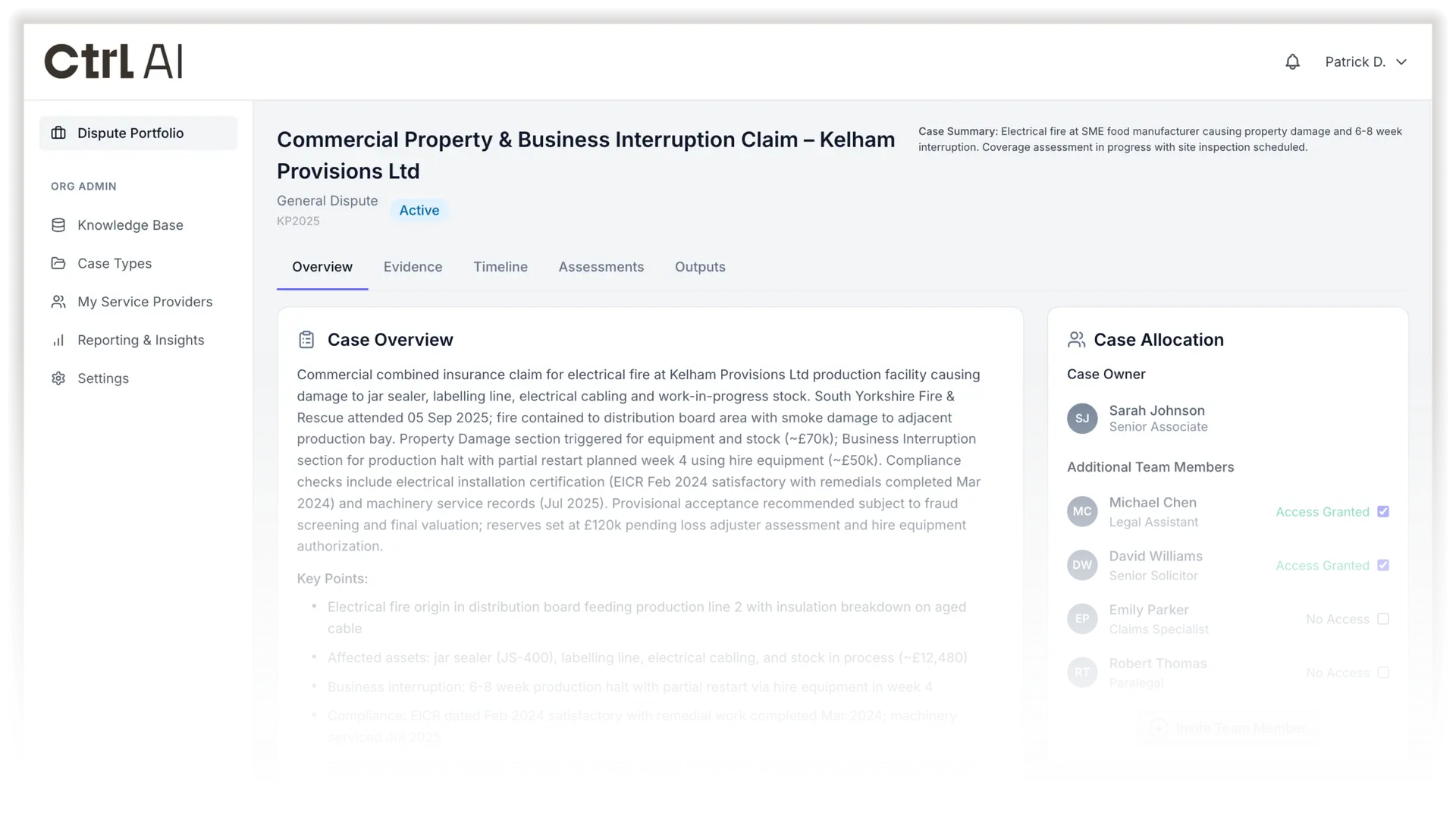 Ctrl AI brings structure from the moment a case begins. Materials are organised automatically, key events are surfaced clearly and the gaps become visible.
